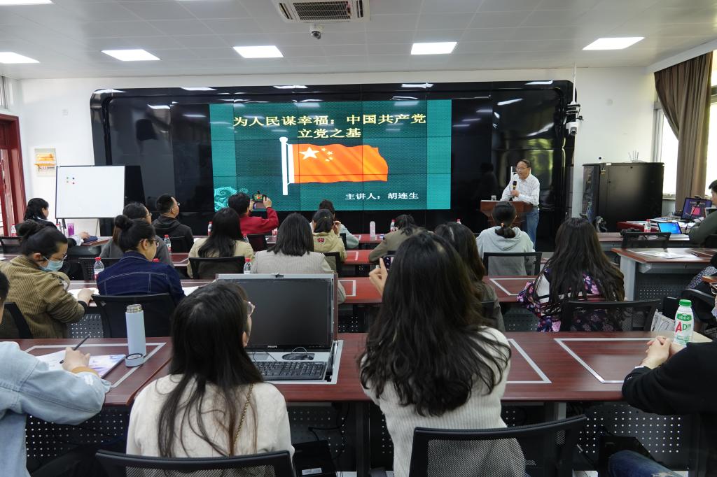 4月29日上午,菠菜广告投放平台在仙林校区德济楼209举办党史学习教育专题讲座。南京财经大学马克思主义学院胡连生教授作专题授课。活动由菠菜广告投放平台学工办主任兼分团委书记仲小晶主持。